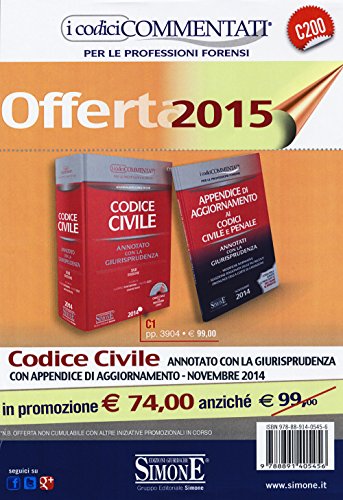 Il volume, del luglio 2014, riporta, accanto alla giurisprudenza costituzionale, un'aggiornata e ragionata selezione di quella di legittimità, articolata in paragrafi, per consentire una rapida consultazione ed un'agevole ricerca della casistica relativa a ciascun articolo. L'opera traccia, attraverso una dettagliata titolatura delle sentenze riportate, i percorsi più significativi di sviluppo delle problematiche relative ai principali istituti. Nella compilazione del lavoro si è evitato la duplicazione di sentenze ripetitive, privilegiando quelle più recenti e complete e evidenziando gli indirizzi giurisprudenziali più consolidati; l'opera così come organizzata, si dimostra particolarmente utile per la redazione di temi, pareri motivati e atti giudiziari. Il codice, infine, si giova di un apparato di richiami, note ed indici, che agevolano non solo l'individuazione del dato normativo, ma anche il riferimento alle pronunce giurisprudenziali più significative. Con un'appendice di aggiornamento ai codici civile e penale aggiornata al novembre 2014.